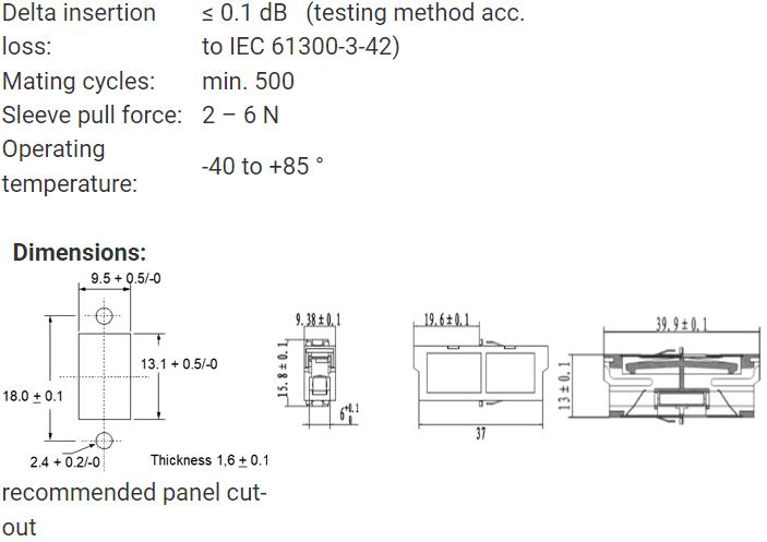 • Compliant with IEC 61754-15, EN 186270, and EN 50377-8