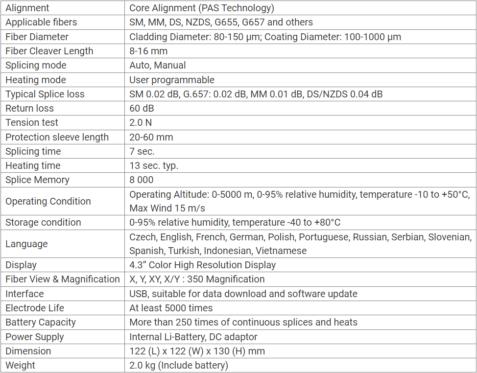 - Fastest splice and heat-up time in the world: 7 seconds for splicing and 13 seconds for heating