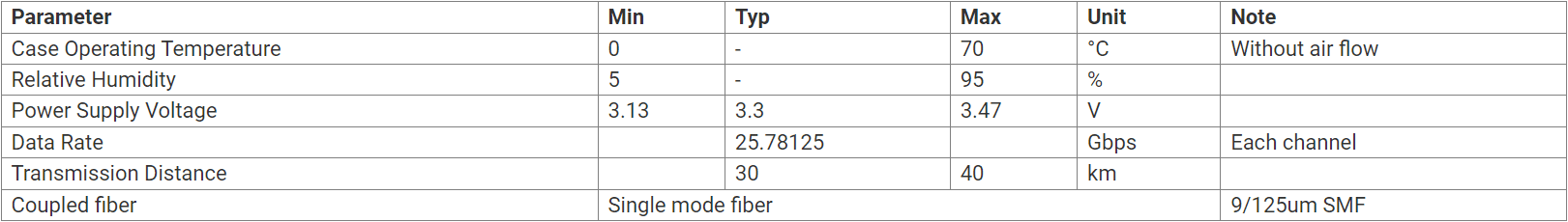 • Compatible with QSFP28 MSA and 4WDM20_40 MSA with LC connector