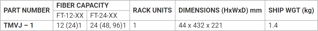 - Accommodates up to 96 fibers in 1 rack unit