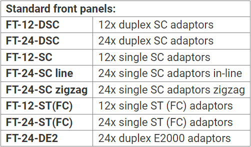- Coupling adapters mounted on the front panel